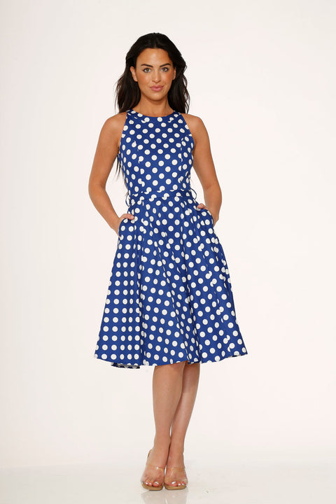 Timeless and effortlessly elegant, the Blue Polka Dot Swing Dress by Orchid Bloom is a vintage-inspired staple that never goes out of style. Featuring a navy base adorned with playful white polka dots, this flattering swing silhouette is perfect for day-to-night wear.