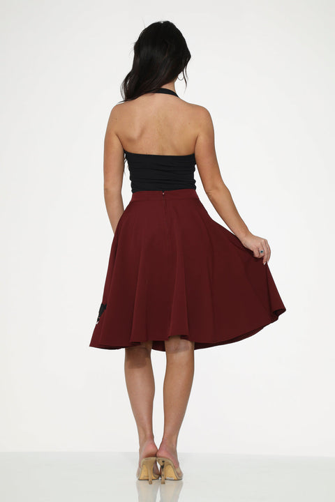 Burgundy Black Embroidered Poodle Swing Skirt