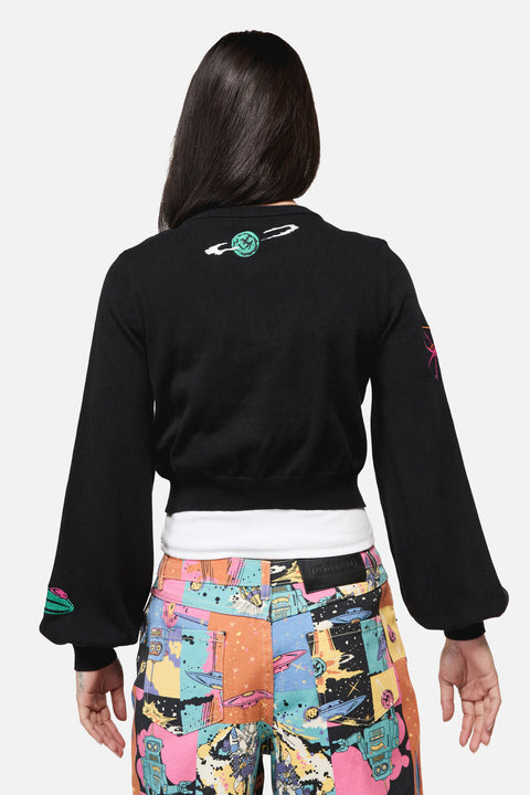 Step into the cosmos with our galactic-inspired cardigan, where shimmering metallics and deep-space hues collide. This otherworldly knit channels stardust and starlight—making you the center of any universe. Perfect for dreamers, stargazers, and anyone who dresses like they’re destined for the stars.