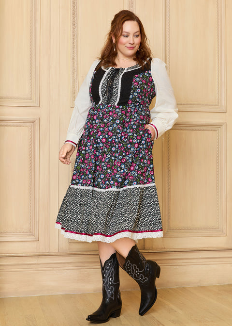 Prairie charm with the GUNNE SAX for ModCloth Madilyn Midi Dress. The corset-inspired bodice with a cinched waist offers a figure-flattering look with a touch of vintage allure. The long-sleeve, twin-print dress features embellished cuffs, a lace-detailed hem, and pockets! This boot-topper dress is perfect for any season.