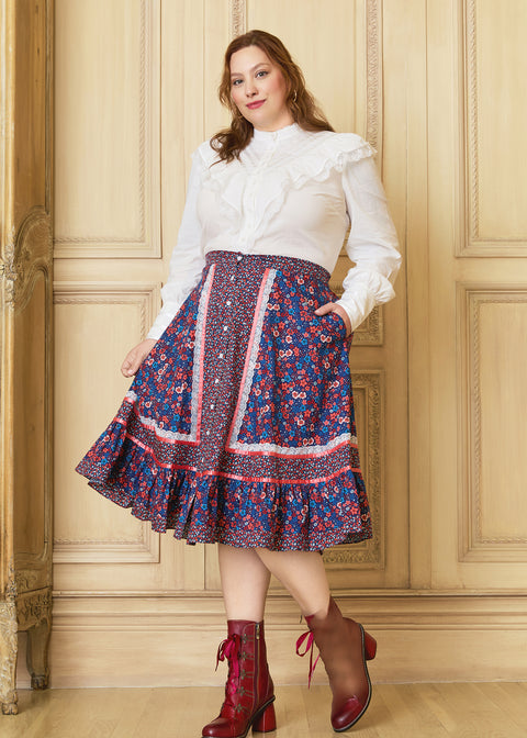 The GUNNE SAX for ModCloth’s Isabella Midi Skirt can’t be topped. This Milkmaid-inspired A-line midi skirt, featuring a floral twin print, is a prairie-core must-have. The skirt is trimmed with delicate lace, satin ribbon, unique flower buttons, and pockets! The attention to detail is impeccable. The midi length is perfect for showcasing your boots, making it ideal for your perfect festival look.