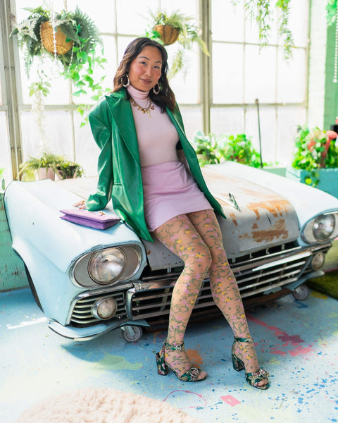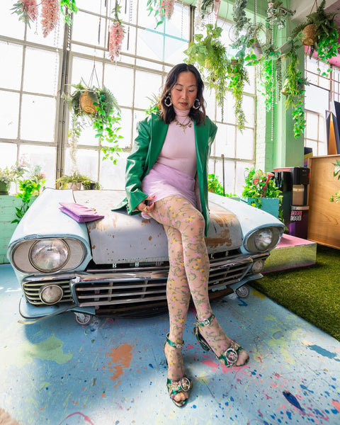 Meet the thigh-high version of our bestselling Heart Floral sock: the Heart Floral Sheer Thigh High Stockings. Romantic, feminine, and irresistibly sexy, the sheer fabric is adorned with whimsical vines, dainty hearts, and pastel blooms that climb gracefully up the leg. The thigh-high silhouette adds a flirty, elongated touch to your legs for the perfect blend of dreamy and daring. Whether you’re dressing up for date night or a garden party, these stockings are designed to turn heads.