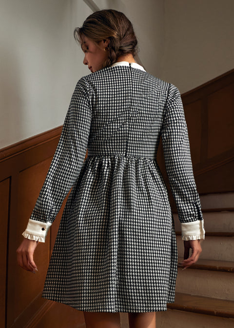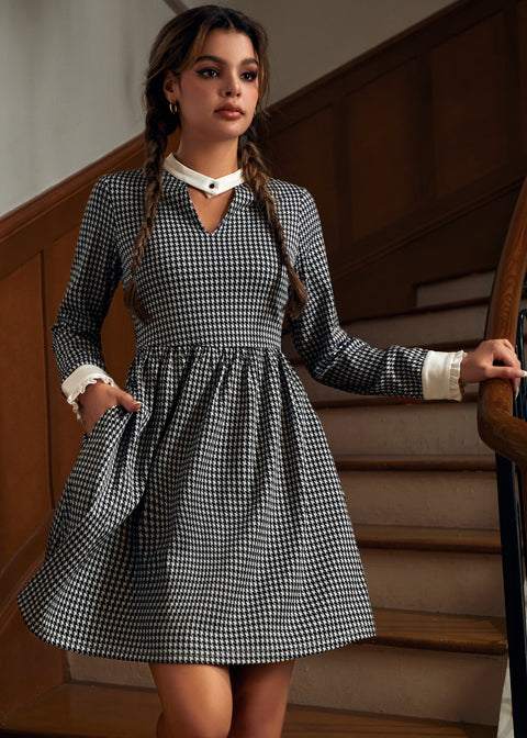 Nail your look in the Houndstooth and Nail Dressfrom our ModCloth namesake label. This fit-and-flare stunner features a timeless black-and-white houndstooth print, accented by a keyhole neckline and crisp white contrast collar with button detail. Ruffled cuffs add a playful twist, while hidden side pockets bring everyday practicality. Pair it with tights and loafers for an office-ready ensemble, or heels and red lipstick for instant retro drama.