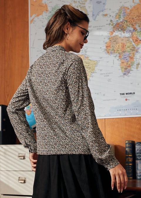 Bring charm to your everyday look with the Knot Your Average Blousefrom our ModCloth namesake label. This long-sleeve popover top features a bow-tie neckline, button up front, and a relaxed fit that tucks easily into skirts or trousers. The Petite Posyprint sprinkles dainty florals across a black background, making it a versatile piece that layers perfectly for work, weekends, or wherever whimsy takes you.