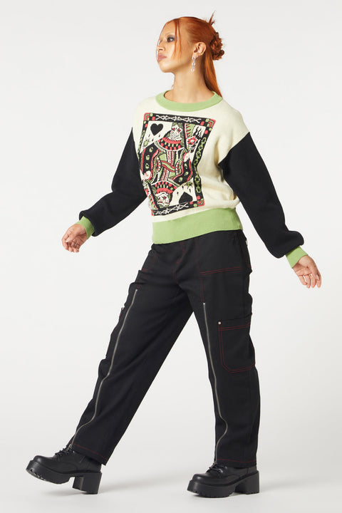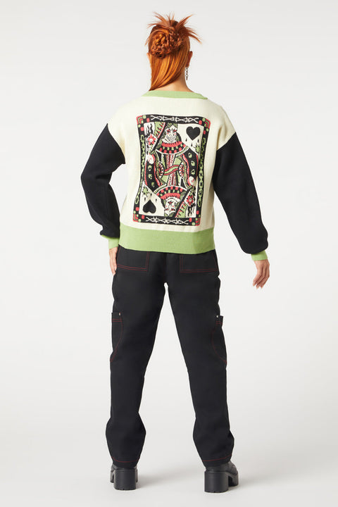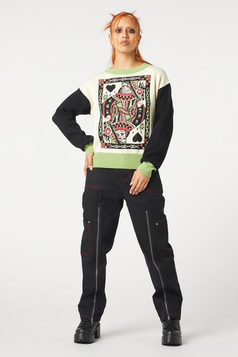 Rule your wardrobe with the Long Live The Queen Knit by Dangerfield. This bold graphic sweater is made from soft cotton knit and finished with contrast ribbing for a touch of edge. With long sleeves and a classic crew neckline, it’s the perfect mix of comfort and attitude.