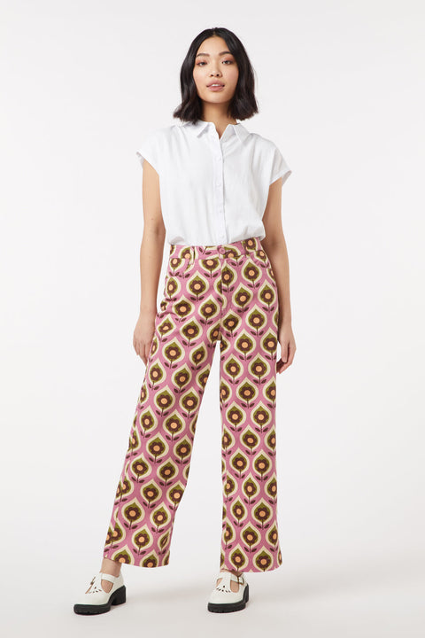 Step out and strut into a throwback vibe with the Mary Jane Jean, where retro chic meets modern swank. Gone are the days of choosing between style and comfort—this daisy wallpaper print is your ticket to nailing that super cute ’60s moment, without having to raid your grandma’s closet. Crafted from soft cotton drill that’s kind to your skin and loves a good stretch, these jeans are all about making you look and feel groovy. The high-waisted rise is a nod to the era of peace and love, offering a silhouette that’s both flattering and forgiving. And let’s talk about those legs – wide enough to make a statement, yet tailored to follow your every move, finishing elegantly at the ankle. Whether you’re channeling your inner flower child or simply looking to sprinkle a little vintage magic into your day-to-day, the Mary Jane Jean is your wardrobe’s new best friend.