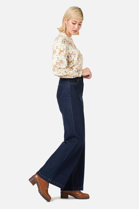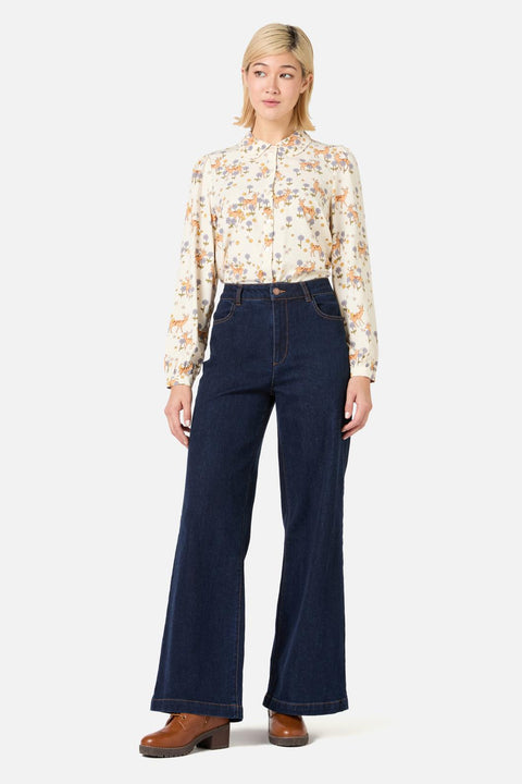 Add a touch of woodland whimsy to your wardrobe with the Meadow Deer Long Sleeve Blouse by Princess Highway. Printed with a cozy winter scene of sweet deer nestled among meadow daisies, this cream blouse is crafted from smooth viscose for a soft, fluid drape. Finished with a rounded collar, button-down front, and cuffed sleeves, it’s a charming piece perfect for layering or wearing on its own.