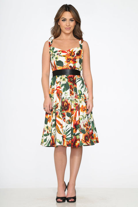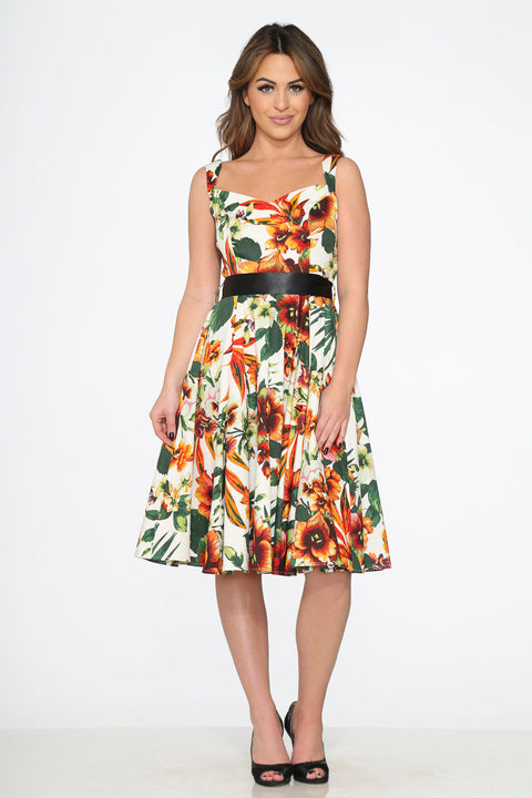 Delicate and graceful, the Prince Lily Floral Swing Dress by Orchid Bloom features a beautiful floral print inspired by the elegance of lilies in bloom. With its timeless swing silhouette and vintage flair, this dress is perfect for garden parties, weddings, or any occasion where a touch of romance is in order.