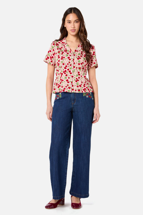 Sweet as summer berries, the Raspberry Short Sleeve Blouse by Princess Highway channels 90s nostalgia with its playful print and flattering silhouette. Featuring juicy raspberries and delicate blossoms on a soft pink base, this semi-fitted style is perfect for pairing with high-waisted skirts or denim for a fresh, vintage-inspired look.