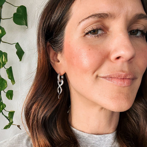 This charm is styled on our Chunky Hammered Rounded Huggie Hoop (Gold) and Coil Chunky Rounded Huggie Hoop (Silver)