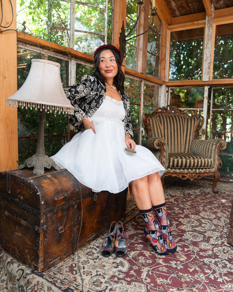 Dracula Scary Cute Shimmer Sheer Crew Sock