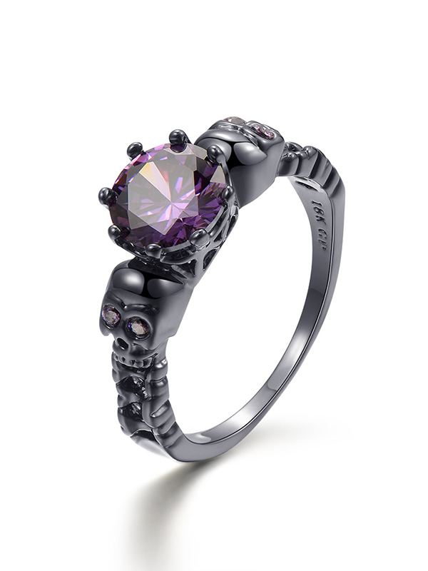 Punk-Totenkopf-Lila-Zirkon-Ring