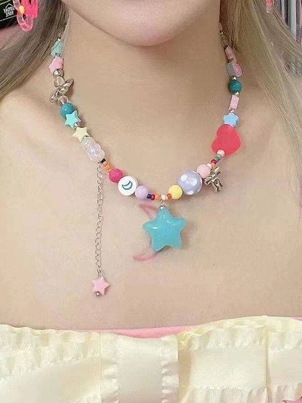 Stern-Charm-Korn-Faux-Perlen-Halskette