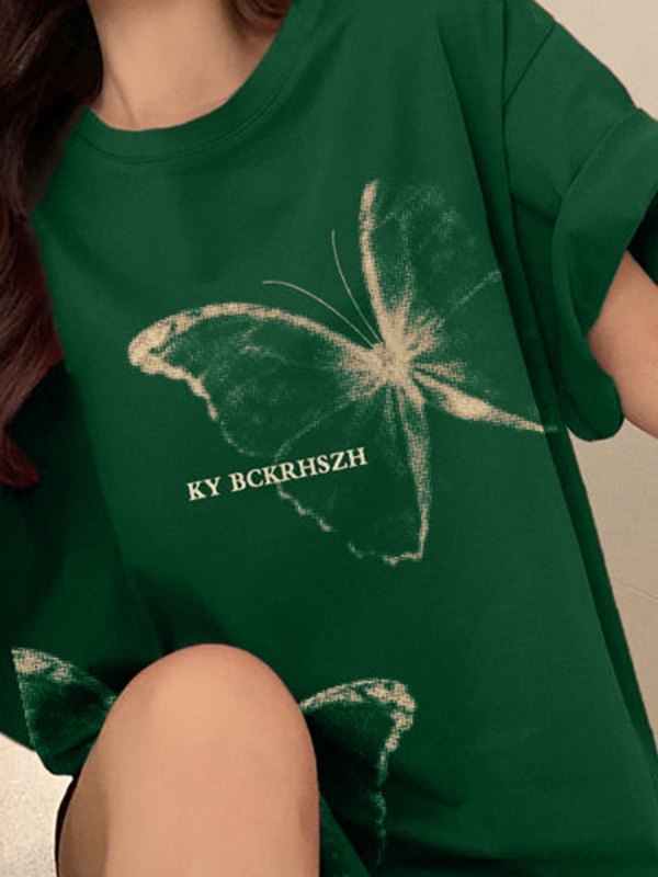 Übergroßes Kurzarm-T-Shirt mit Vintage-Schmetterlingsdruck