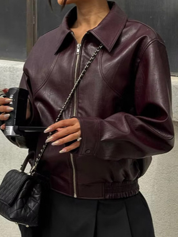 Auffällige, einfarbige Motorradjacke mit Revers