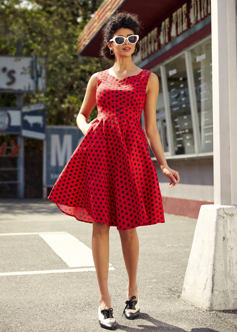 Red Black Polka Dot Swing Dress