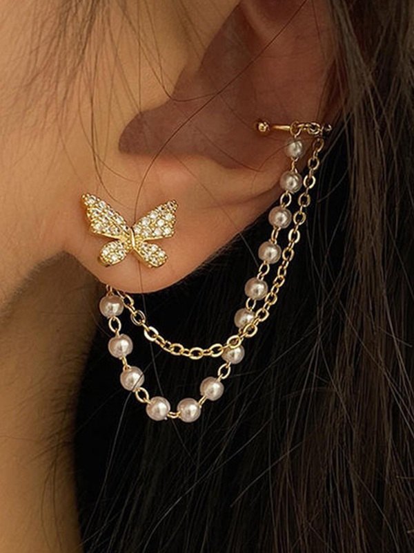 Faux-Perlen-Quasten-Strass-Schmetterlings-Ohrring
