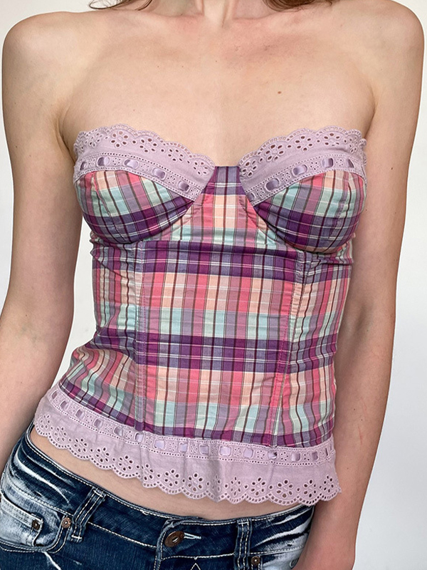 Bandeau-Top mit Patchwork-Brust und Spitze im Teenager-Stil