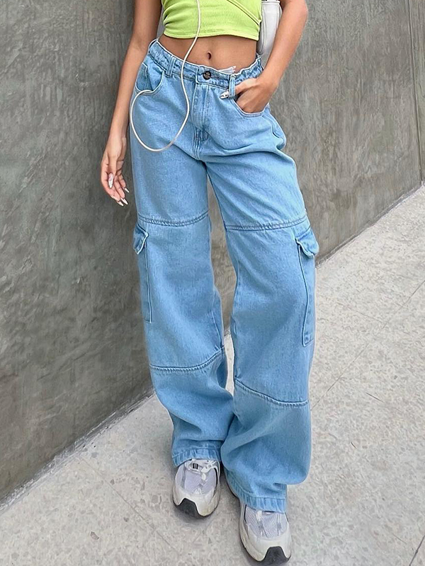Lässige Cargo-Jeans mit Reißverschlusstaschen