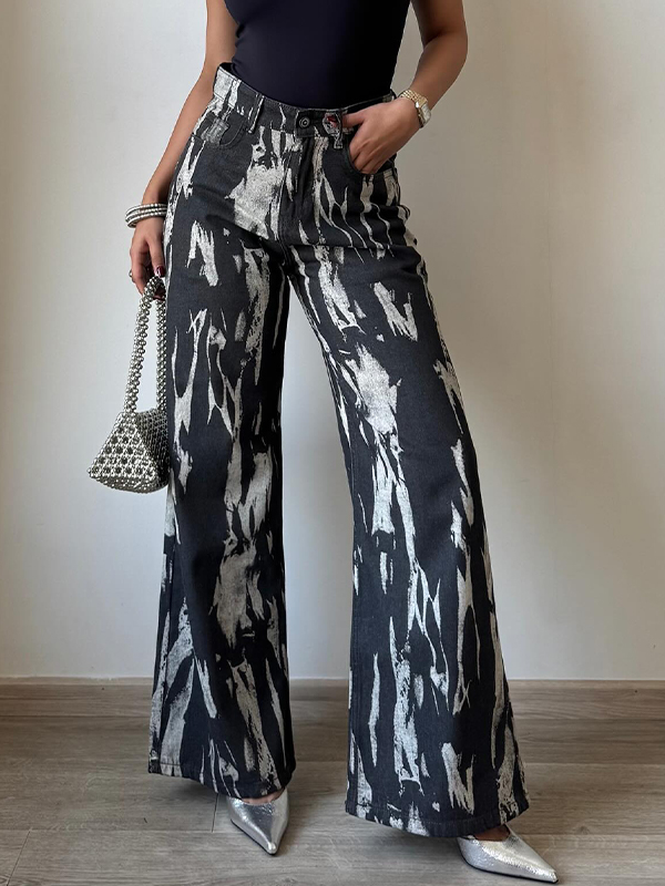 Lockere, gerade geschnittene Boyfriendjeans im Batik-Stil