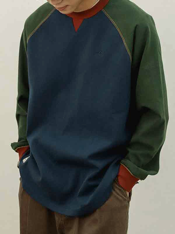 Vintage-Langarm-T-Shirt für Herren in Kontrastfarbe