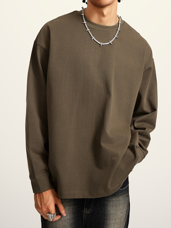 Einfarbiges Herren-Langarm-T-Shirt mit tief angesetzter Schulterpartie