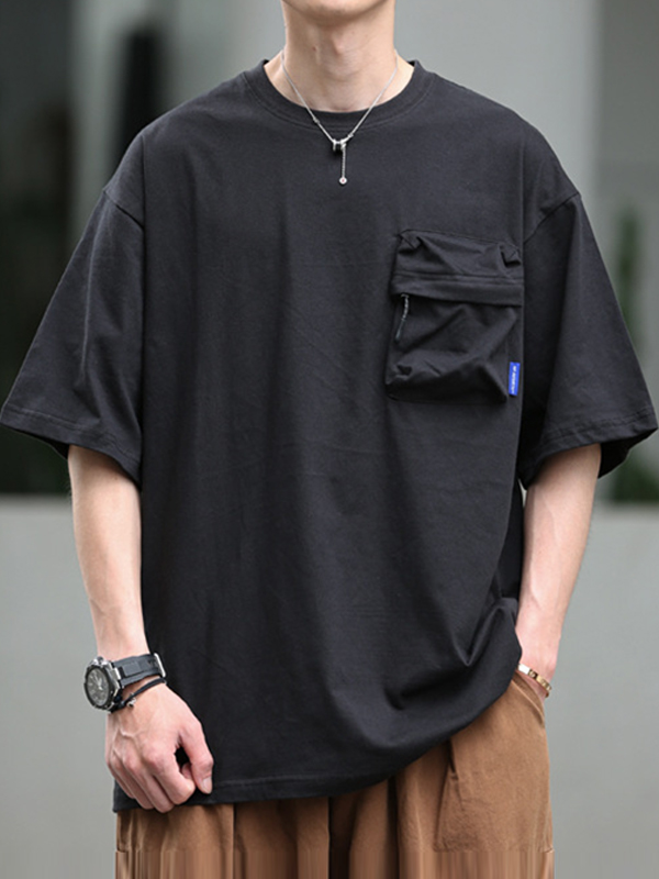 Übergroßes Kurzarm-T-Shirt mit einfarbiger Tasche für Herren