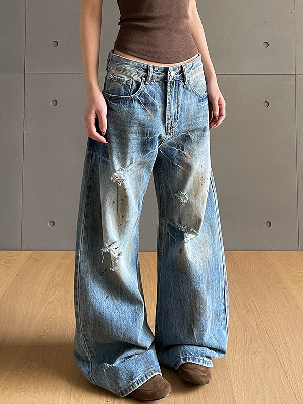 Niedrig taillierte, schmale, verwaschene Boyfriendjeans im Gradient-Look