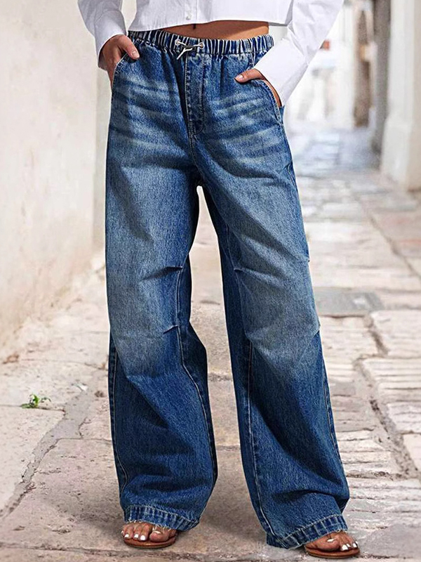 Lockere Boyfriendjeans mit weitem Bein und Kordelzug