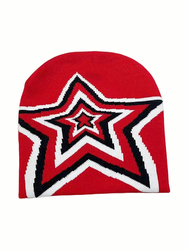 Kontrastfarbene Strickmütze mit quadratischem Design