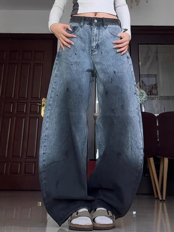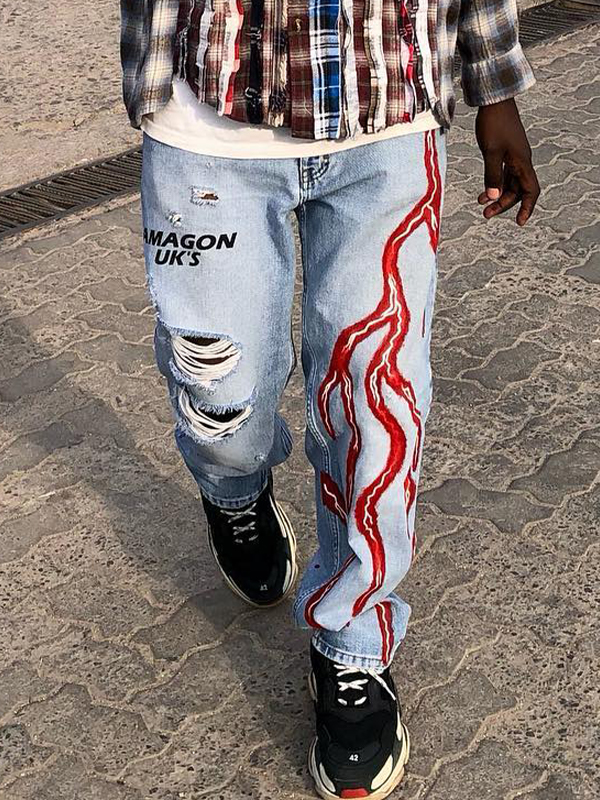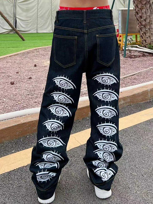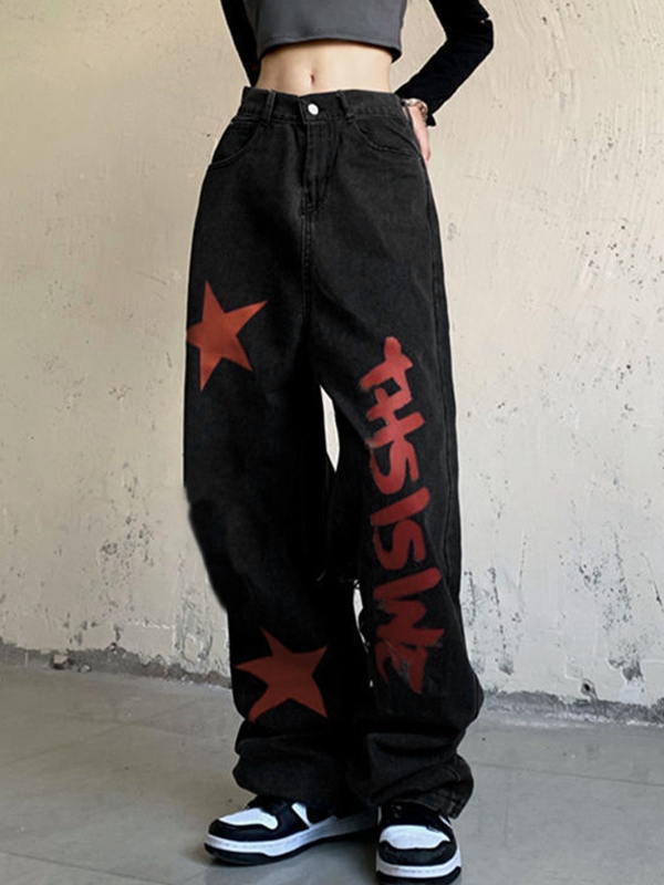 Boyfriend-Jeans mit hohem Bund und kontrastierendem Farbdruck