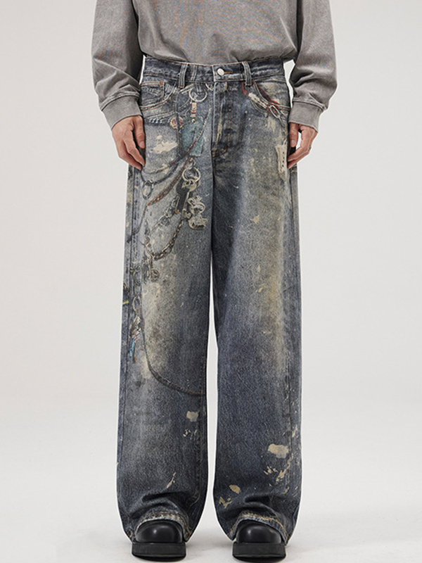 Lockere Jeans mit verwaschenem Cool-Print für Herren