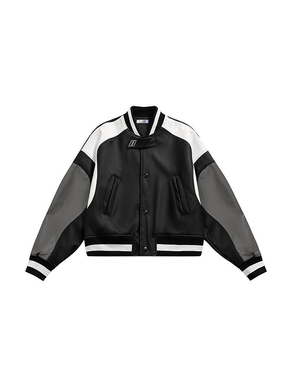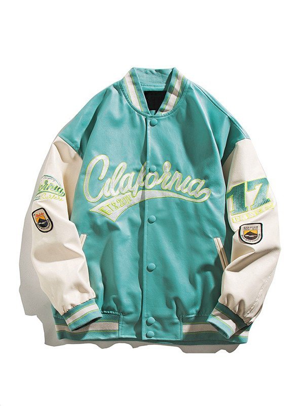 Bestickte Collegejacke aus PU-Leder für Herren