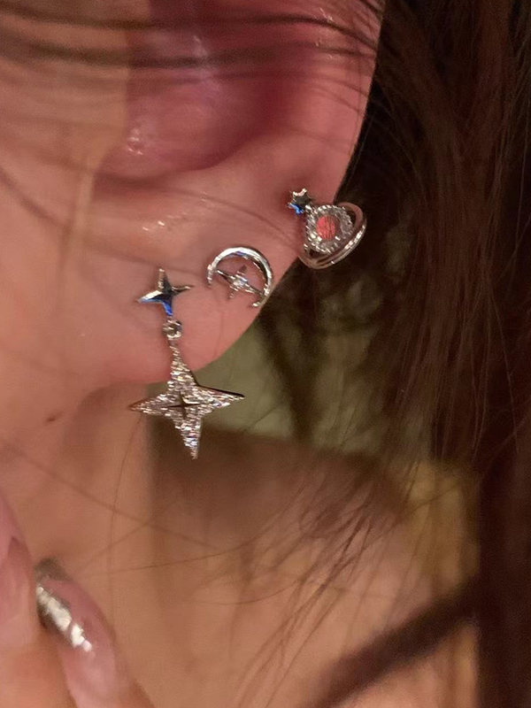 6 Stück Stern-Mond-Saturn-Ohrstecker