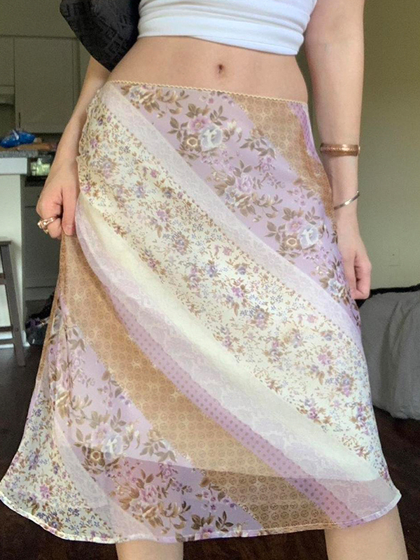 Vintage Grüner Patchwork Maxirock aus Spitze