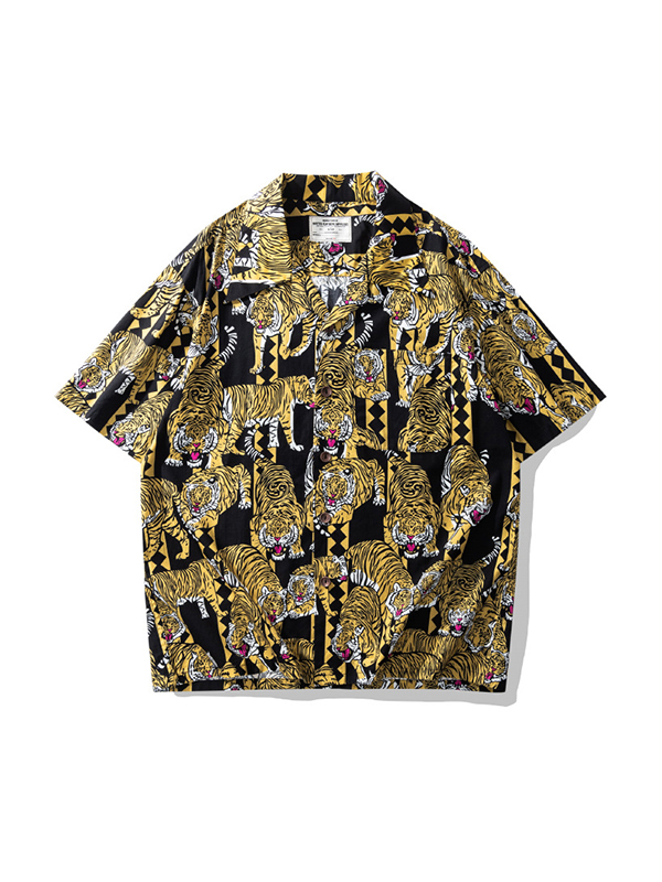 Kurzärmliges Button-Down-Hemd mit Vintage-Print für Herren