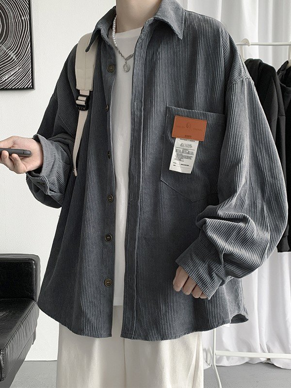 Cord-Langarmhemd mit Patch-Detail für Herren