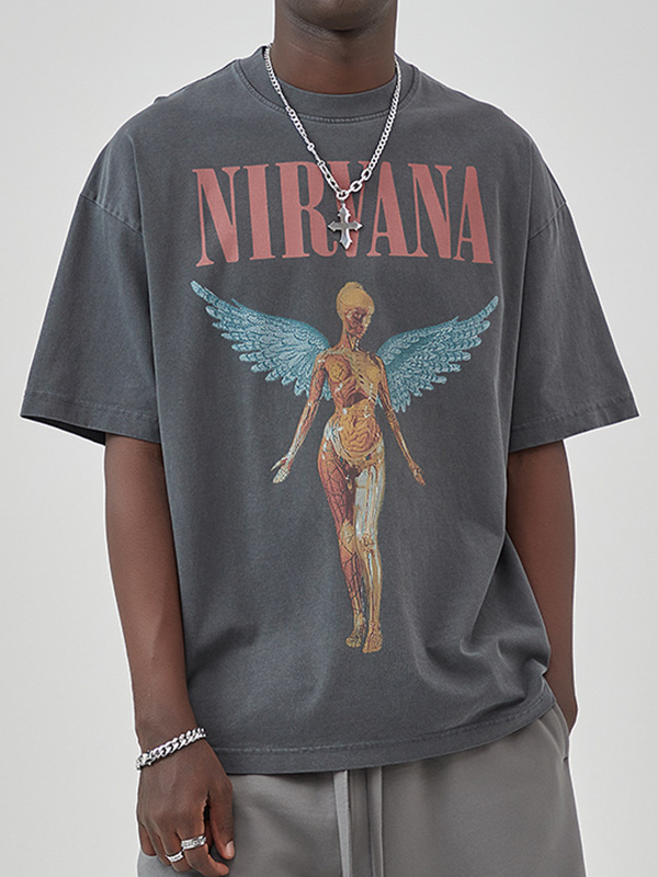 Oversize-Kurzarm-T-Shirt mit Flügel-Print für Herren