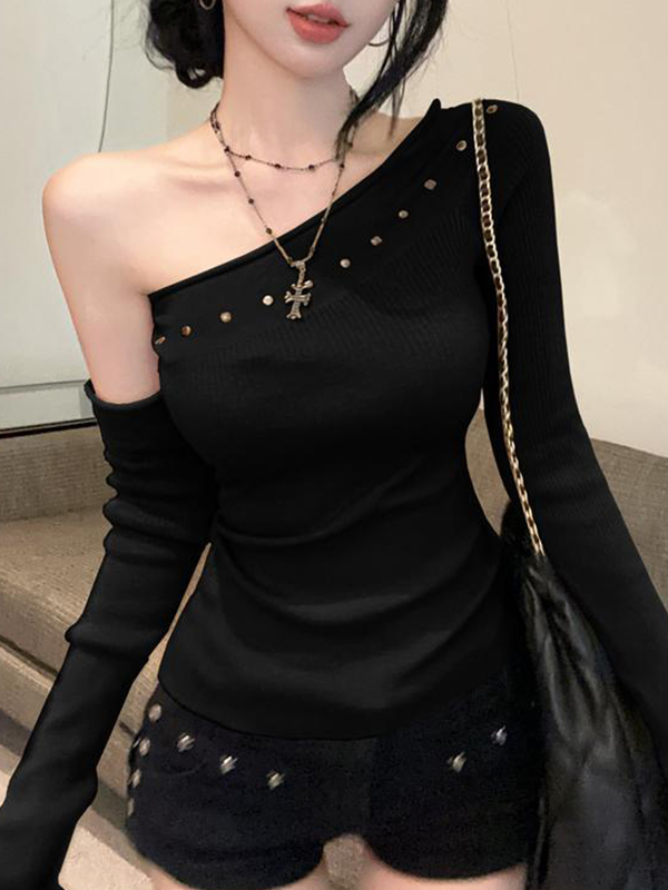 Spicy Girl Style Strass Schräge Schulter Langarm