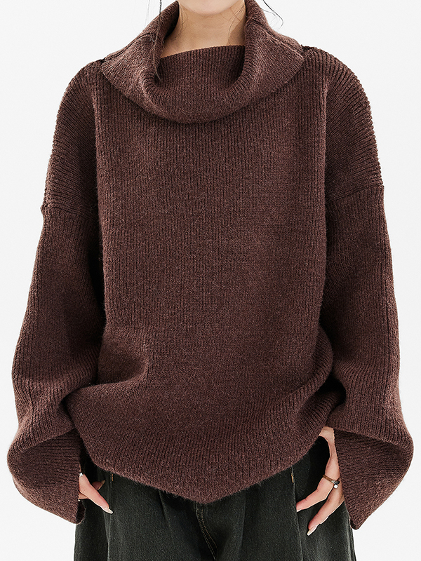 Langärmliger Strick mit Kapuze und Raw Edge in Kontrastfarbe
