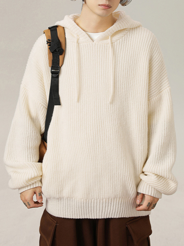 Einfarbiger, gerippter Strickjackenpullover für Herren mit Reißverschluss