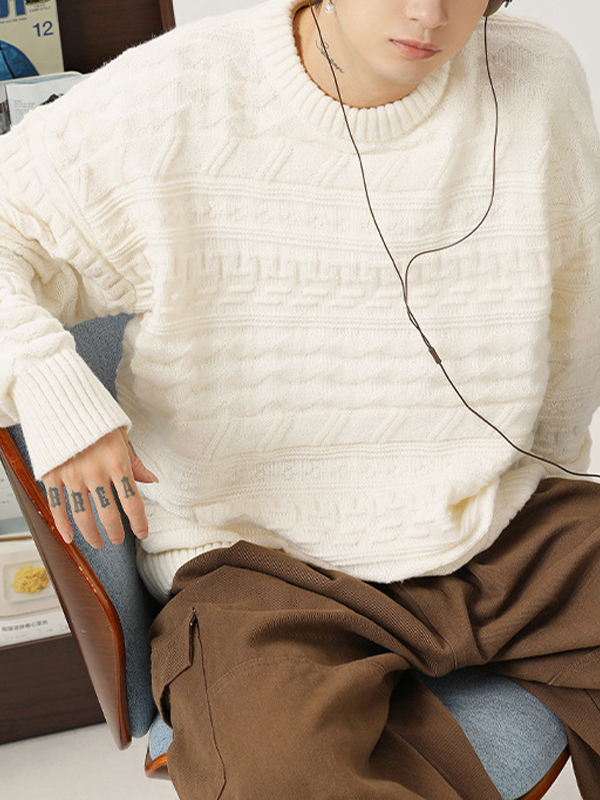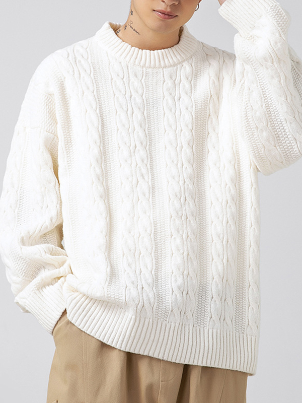 Pullover mit Rundhalsausschnitt und Retro-Zopfmuster