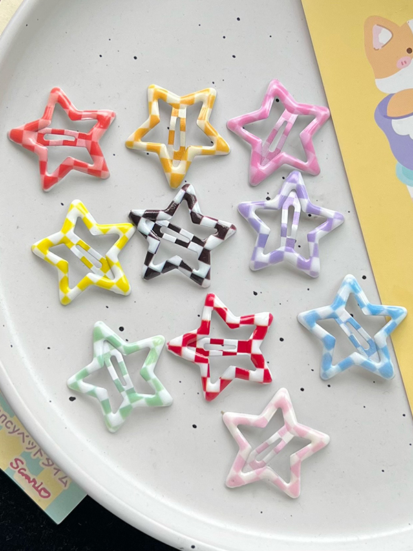 1 Stück sommerliche karierte Stern-Haarspangen