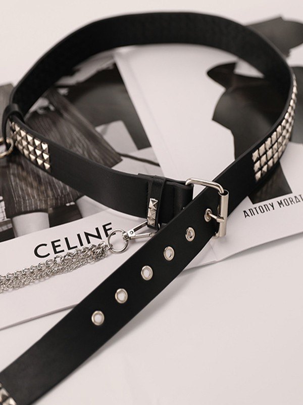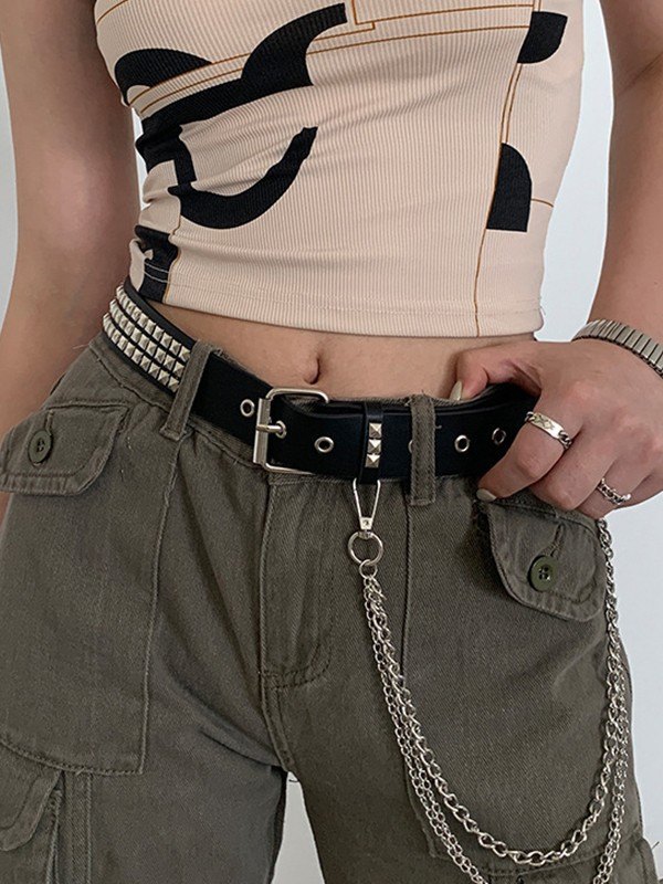 Abnehmbarer Kettennieten-PU-Ledergürtel