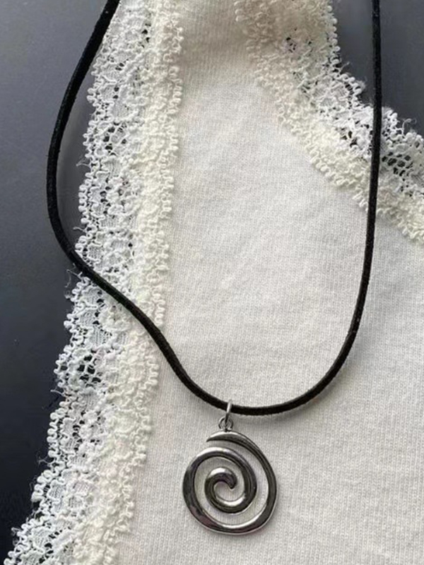 Halskette aus geflochtenem Leder mit Punk-Swirl-Anhänger