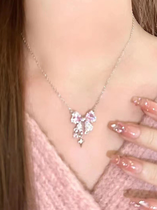 Strass-Halskette mit Schleifen-Anhänger