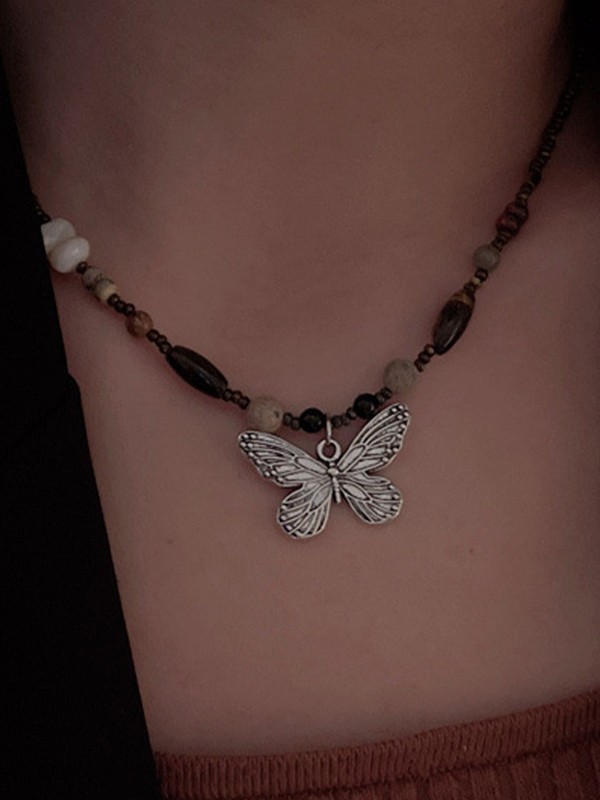 Vintage Perlen Stein Schmetterling Halskette