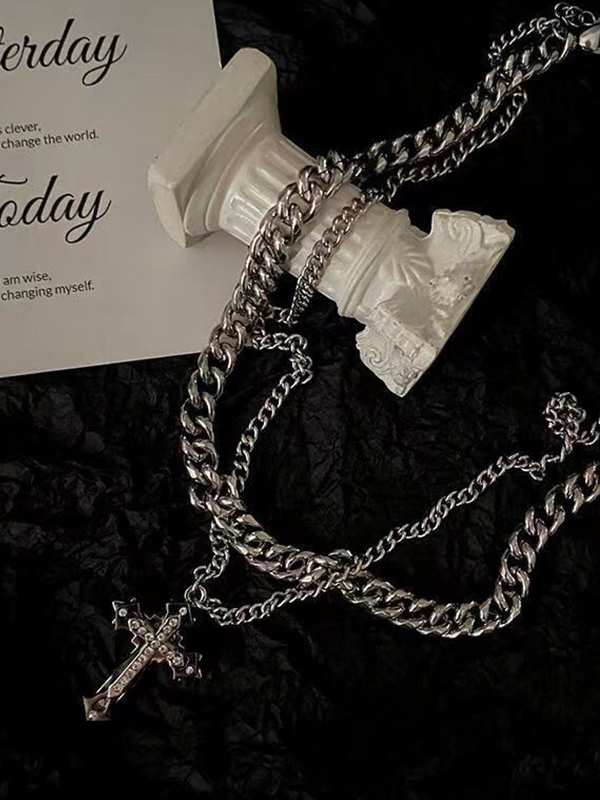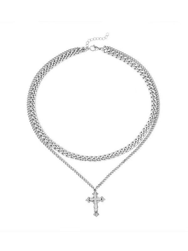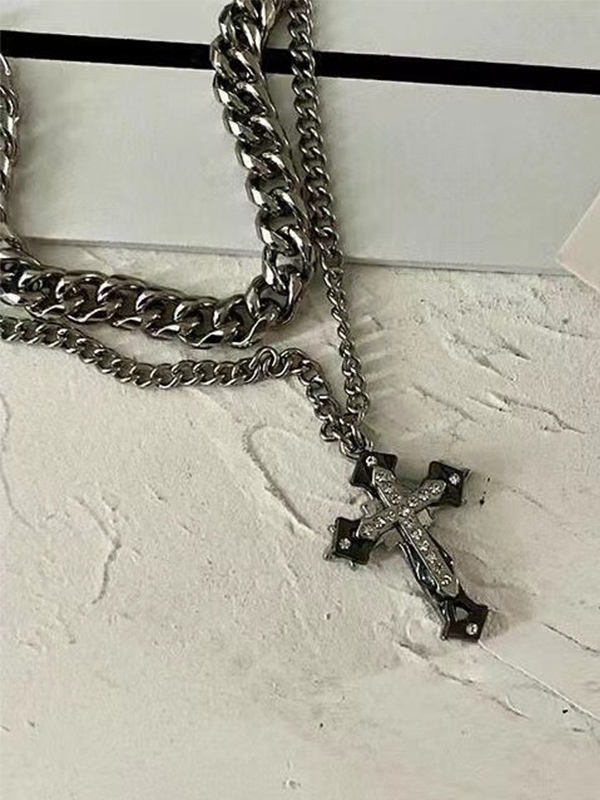 Doppellagige kubanische Halskette mit eingebettetem Diamant für Herren