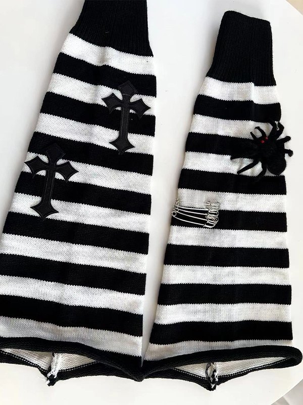 Detail: Mit elastischen Bündchen, Sicherheitsnadeldekore, Spinnenverzierung und Kreuzpatch-Design.