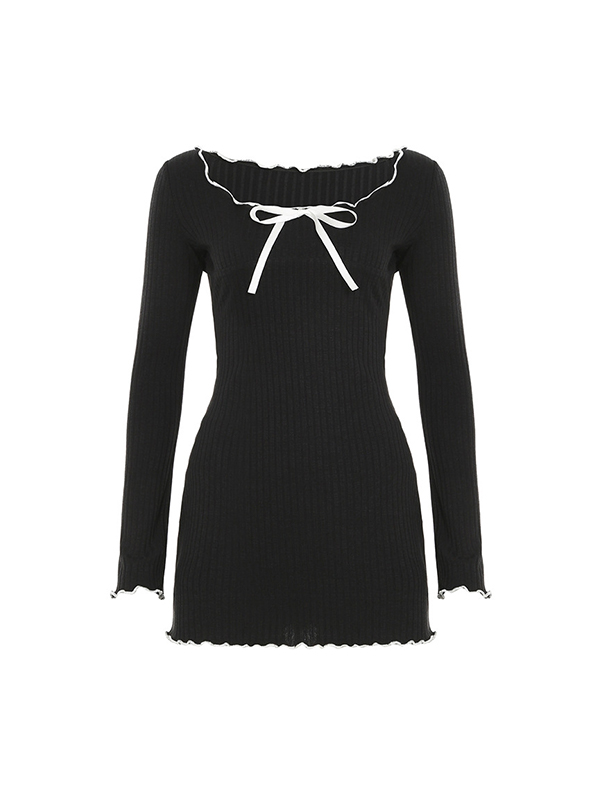 Minikleid mit gewellter Kante und Schleife